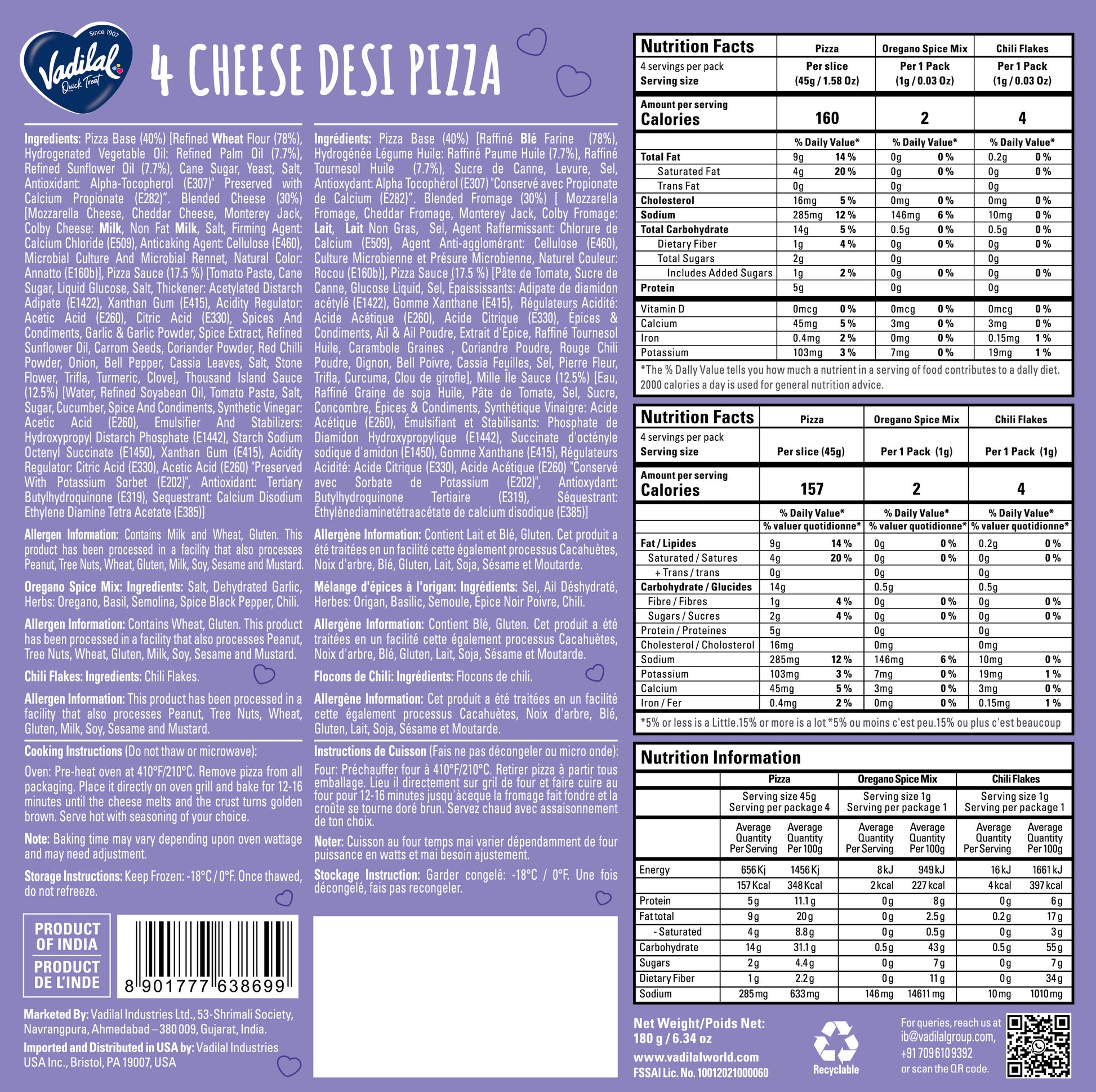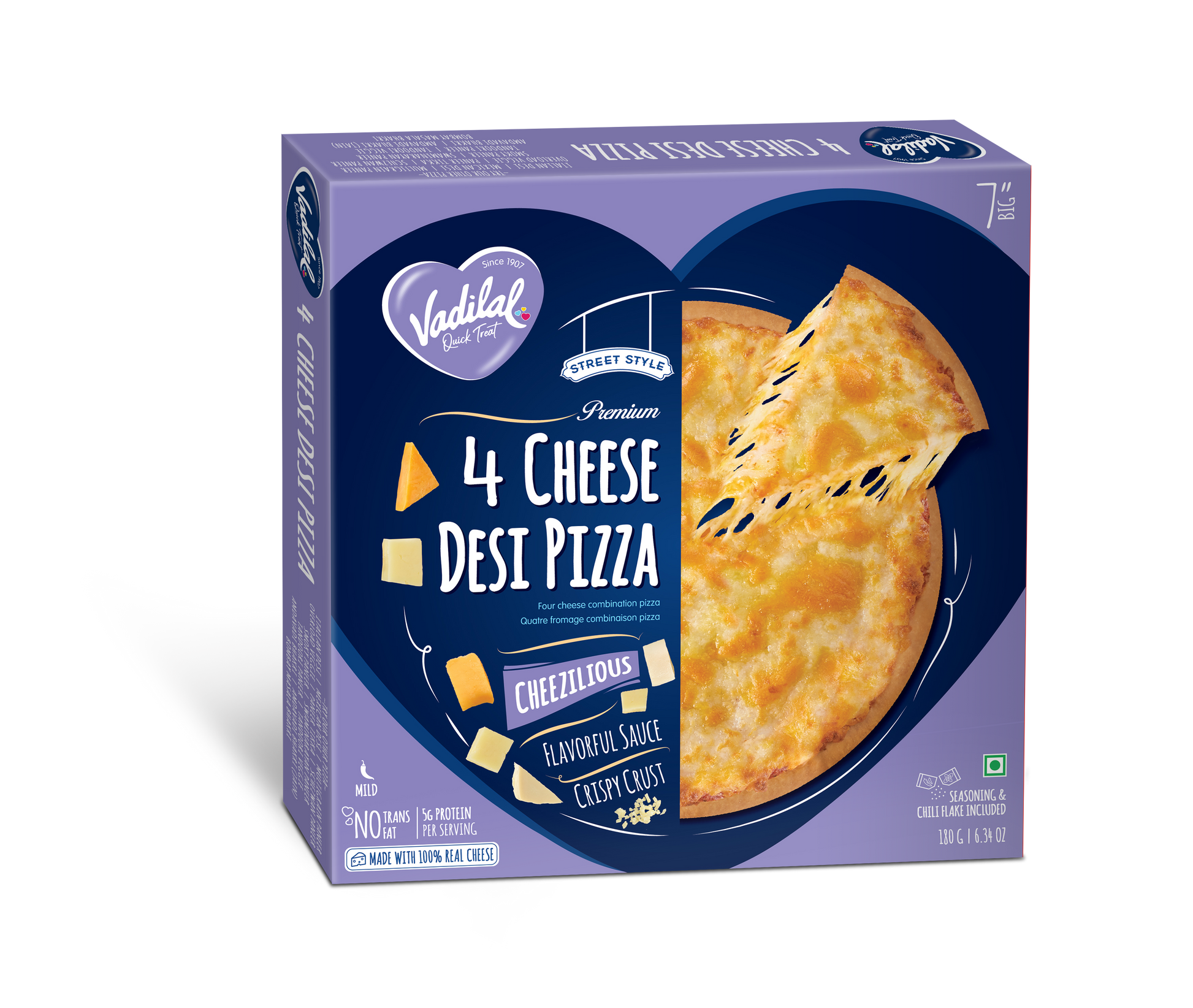 Experience the ultimate cheesy delight with our 4 Cheese Desi Pizza - featuring a decadent blend of four cheeses atop a crispy crust, layered with tangy sauce, and a medley of desi-inspired toppings, offering a rich and indulgent fusion of flavors that's sure to satisfy your cravings.