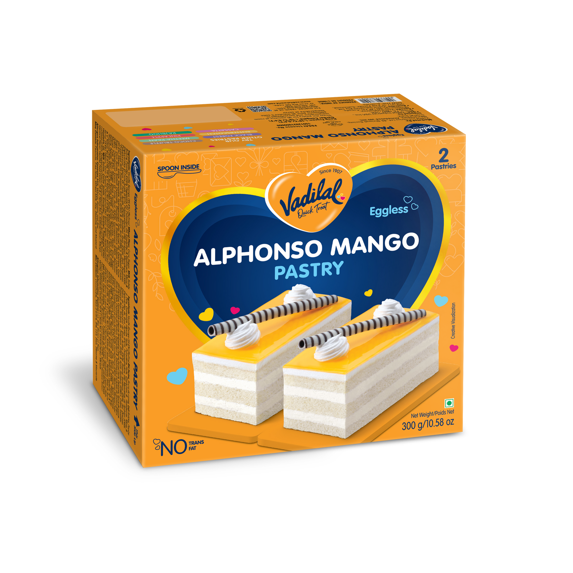 Indulge in the tropical sweetness of our Alphonso Mango Pastry - featuring layers of light sponge cake infused with fresh Alphonso mango puree, filled with creamy mango mousse, and topped with delicate mango slices, offering a refreshing and delightful dessert that celebrates the king of mangoes.