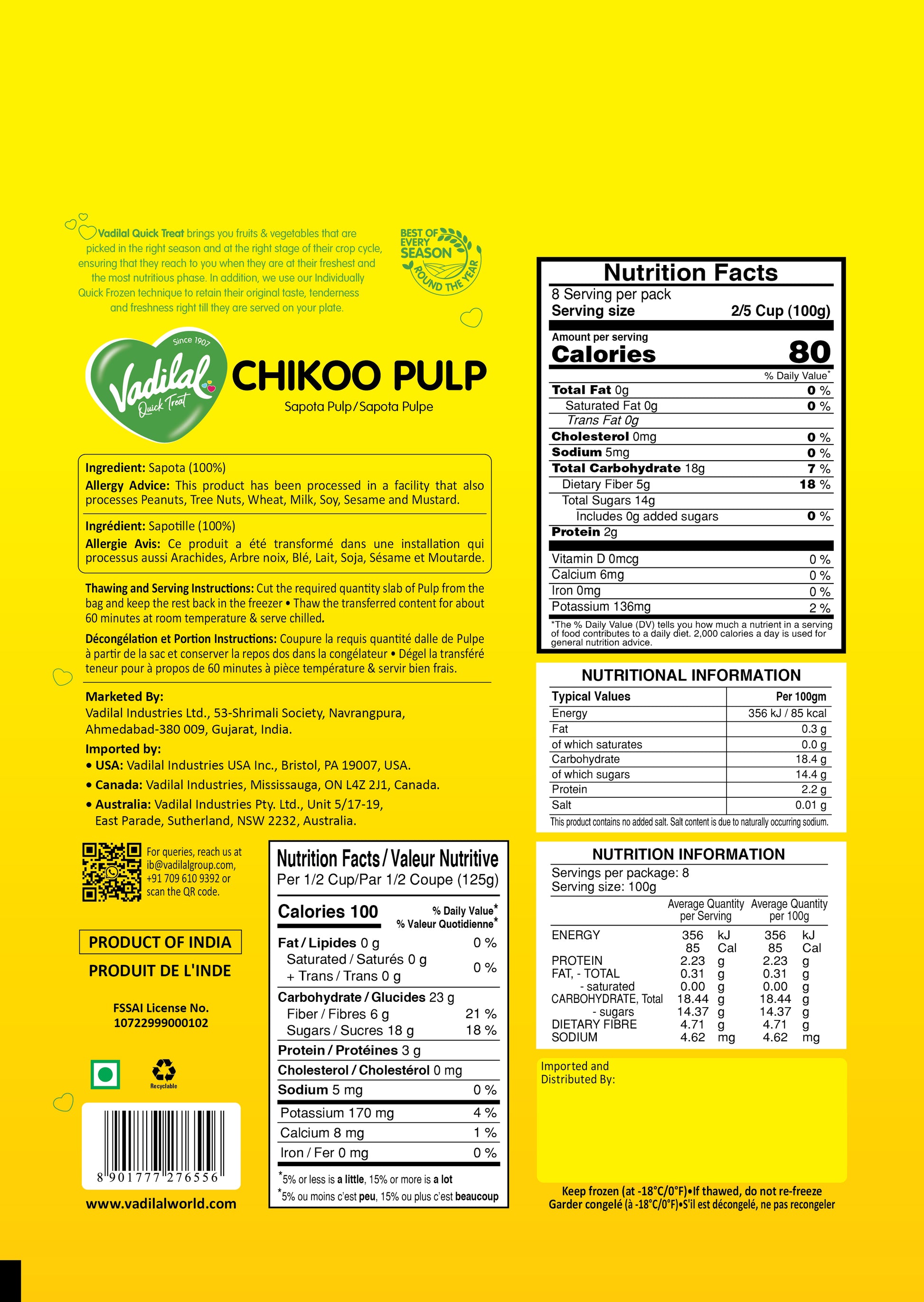 Delight in the velvety sweetness of our Chikoo Pulp - made from ripe and succulent chikoos, this creamy pulp is perfect for making decadent desserts, refreshing beverages, ice creams, and smoothies, offering a taste of tropical paradise in every sip.