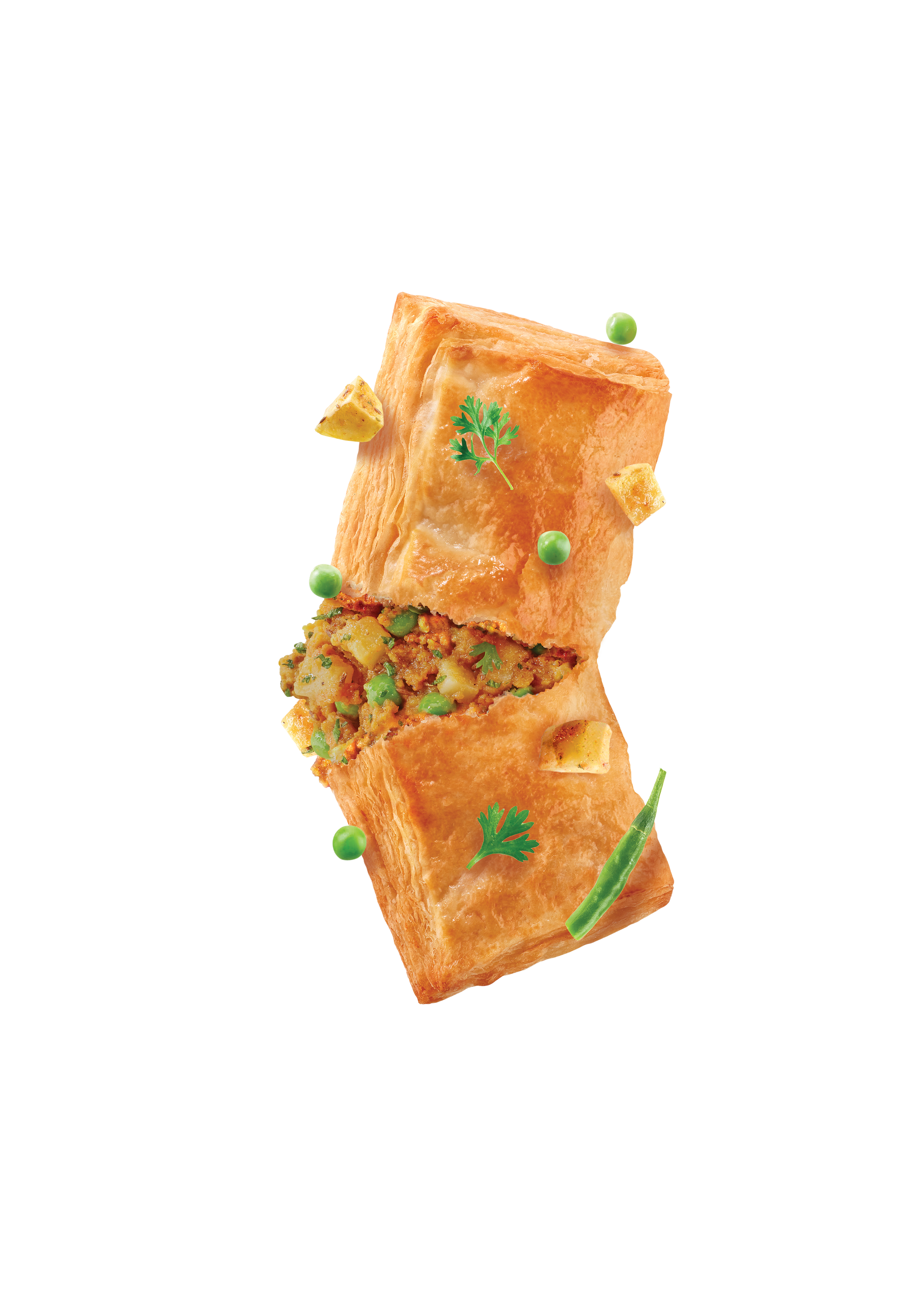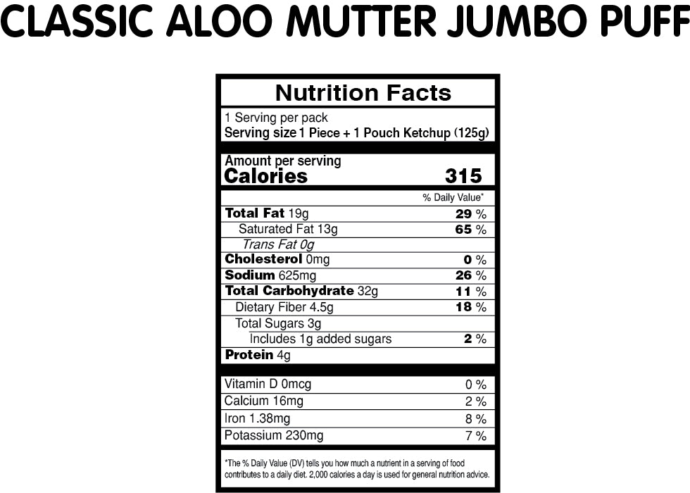 Indulge in the comforting flavors of our Classic Aloo Mutter Jumbo Puff - filled with tender potatoes and plump green peas, seasoned with traditional spices, all wrapped in a flaky golden pastry shell, offering a satisfying and nostalgic treat for any occasion.
