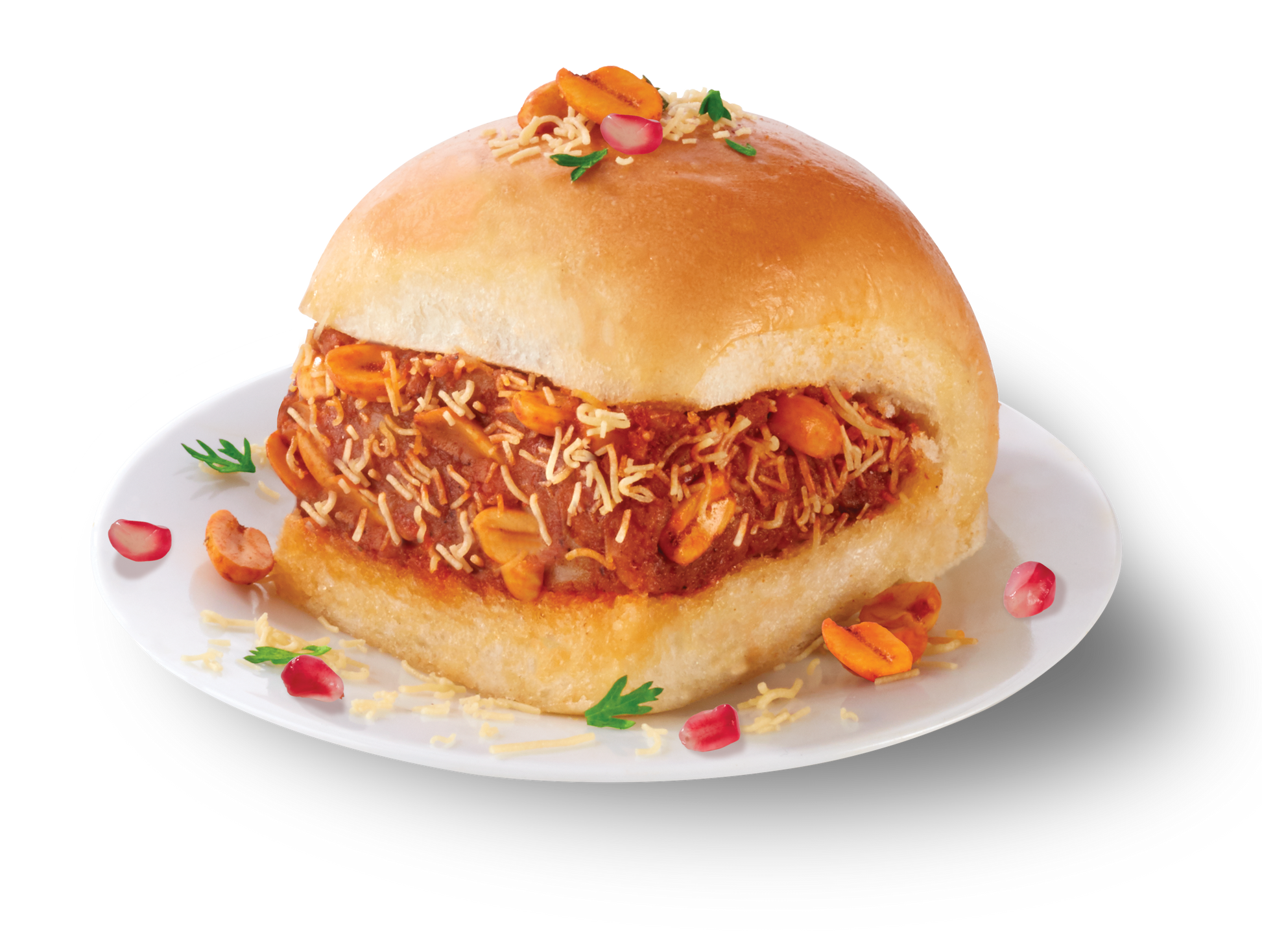 Savor the flavors of Gujarat with our Dabeli - featuring a spiced potato mixture with peanuts, pomegranate seeds, and onions, sandwiched between buttery buns and topped with tangy tamarind chutney and crispy sev, offering a delicious and satisfying snack bursting with sweet, spicy, and savory flavors.