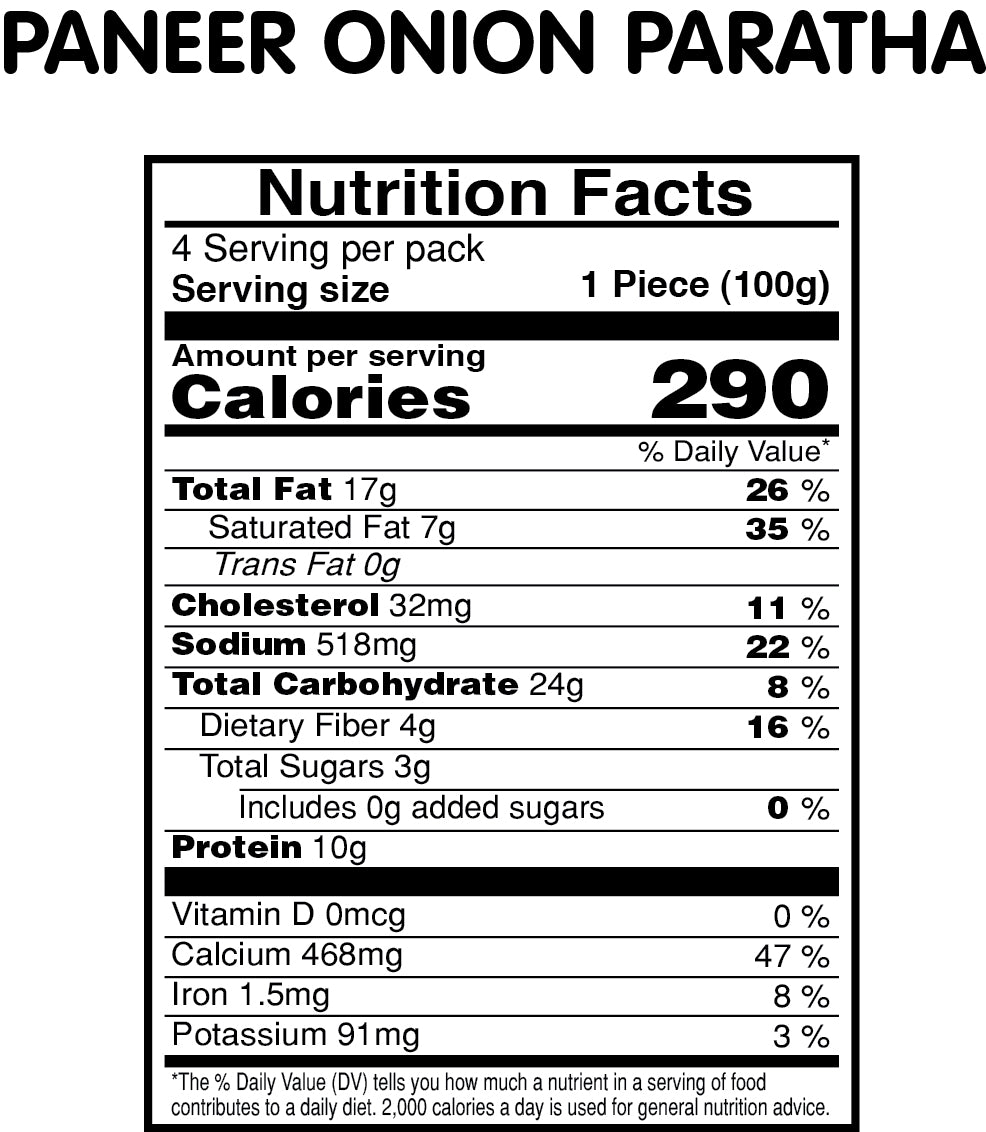 Enjoy the savory goodness of our Paneer Onion Paratha - featuring a soft and flaky whole wheat bread stuffed with a flavorful mixture of paneer (Indian cottage cheese) and onions, seasoned with aromatic spices, offering a delicious and satisfying meal that's perfect for any time of the day.