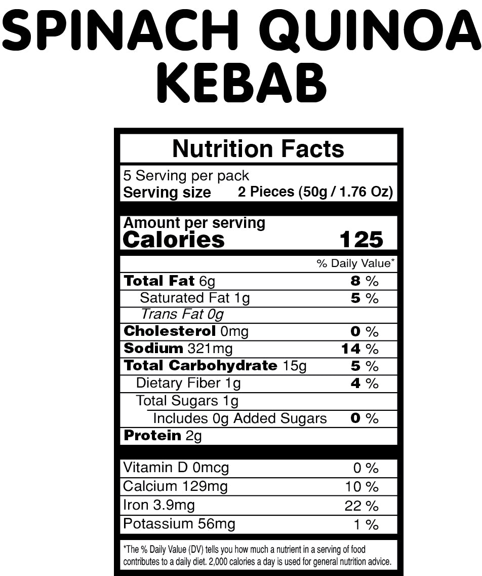 Experience the nutritious delight of our Spinach Quinoa Kebab. Crafted with wholesome spinach and protein-rich quinoa, infused with aromatic spices, these kebabs offer a flavorful and guilt-free indulgence. Perfect for those seeking a healthy yet delicious appetizer or snack option.